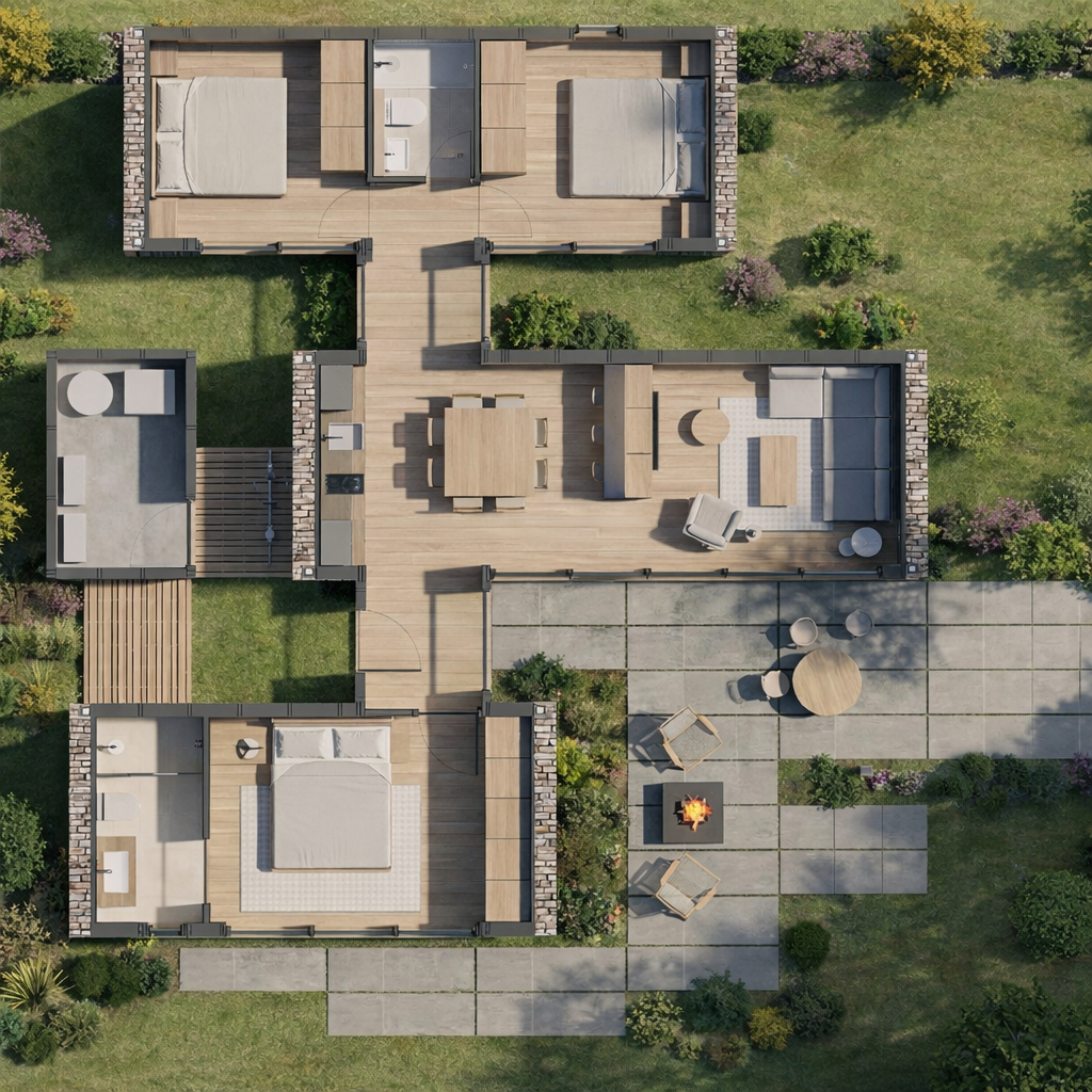 Además del diseño y la calidad industrial, las viviendas incorporan envolventes altamente aislantes y estancas, sistemas avanzados de ventilación y soluciones de autoproducción y almacenamiento energético que reducen de forma significativa el consumo, la factura eléctrica y la huella de carbono. El resultado son espacios confortables, durables y de bajo mantenimiento, con acabados únicos y una ejecución precisa que garantiza una experiencia de vivienda como tú mereces.